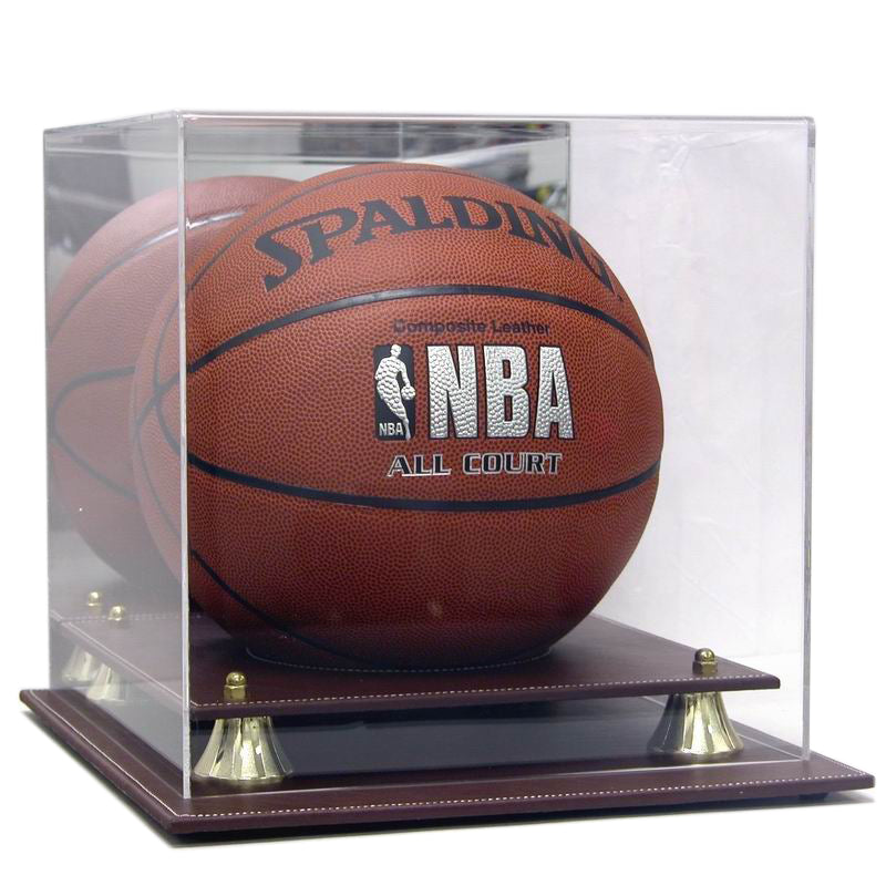 The Executive Leather Acrylic Basketball Display Case is one of our premium cases to display your prized autographed basketball. The double layered brown leather with white stitching gives your basketball an executive office look. Mirrored back acrylic cover to see autographs on the back of the ball.