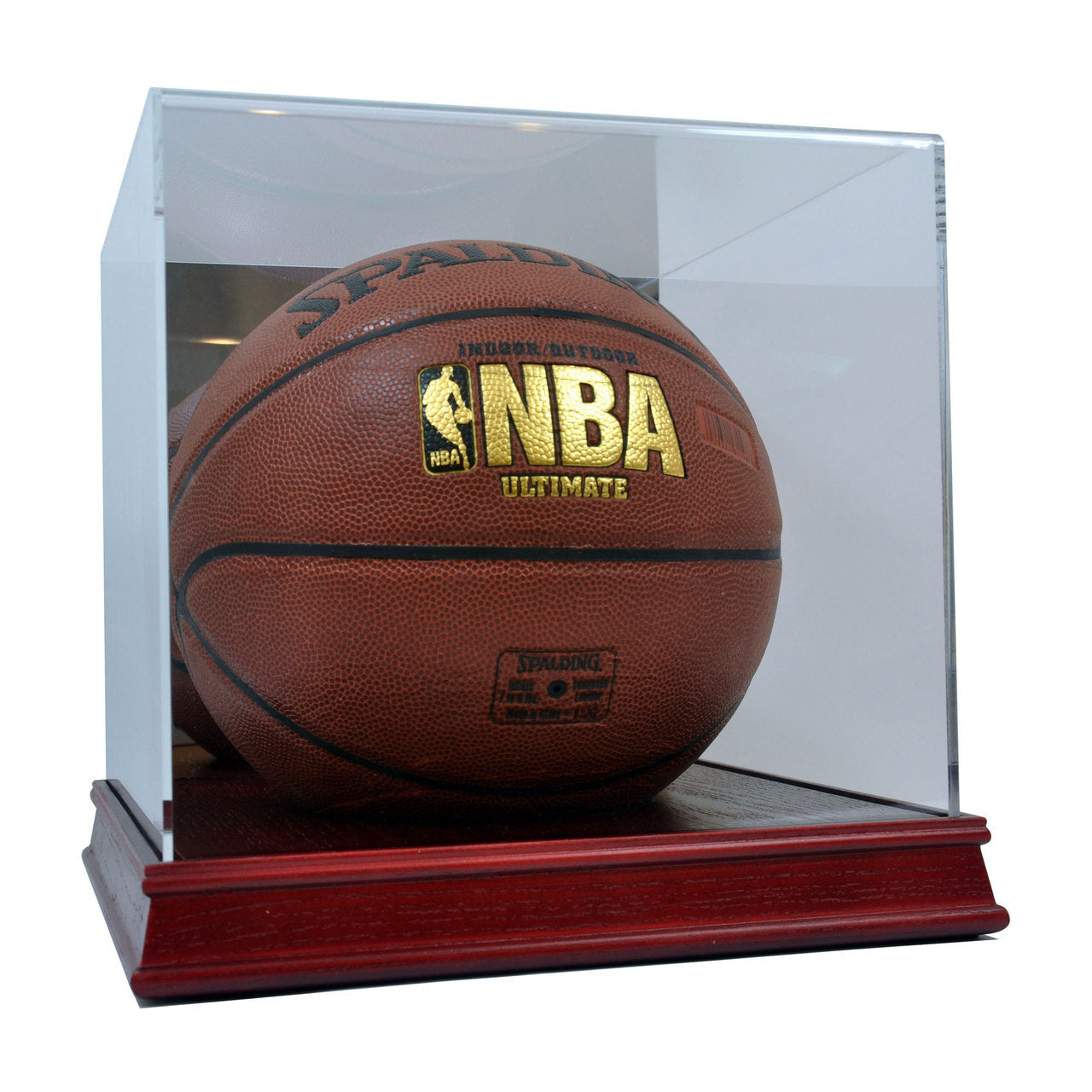 The Basketball Cherry Wood Base Display Case is one of our premium cases to display your prized autographed basketball. The real cherry wood base is a beautiful design it give your valuable basketball the attention it deserves. Mirror back to see autographs on the back of the basketball help see autographs on the back.